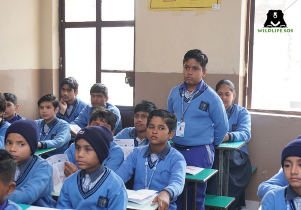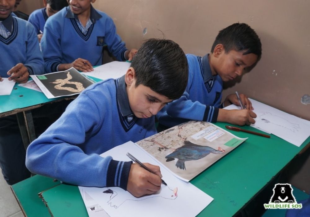 - Armed with sheets of paper and coloured pens, young students of Amar Public School were engrossed in the activity of representing animals in their art. [Photo (C) Wildlife SOS/ Kunal Malhotra]