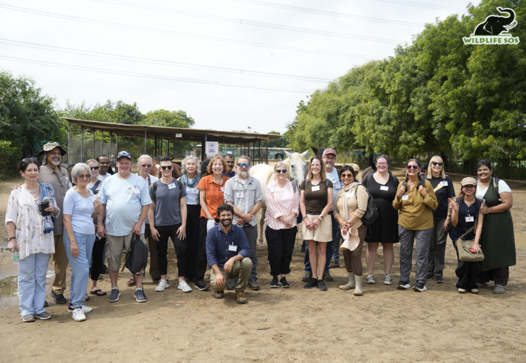 Led by Mr. Kartick Satyanarayan, Co-founder and CEO, Wildlife SOS, and Ms. Amanda Seth, President – Friendicoes SECA, the group was guided through the equine section, where they joyfully fed carrots and cucumbers to the horses and donkeys. The visit continued to where cows were sheltered and dogs were given space, till they entered the ‘Cat Mahal’, an area lovingly named for the rescued cats. The group learned about the facility’s day-to-day work and saw the dedication of caregivers first-hand.