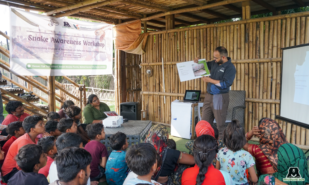 At Wildlife SOS, we believe that conservation begins with awareness. This is why, beyond our rescue and rehabilitation operations, we engage deeply in education and community engagement. Through our awareness workshops and outreach programmes, we work with local communities, schools, and urban residents to help them understand the wildlife that lives around them. Our awareness sessions are not just for civilians, it is for forest officials as well.
