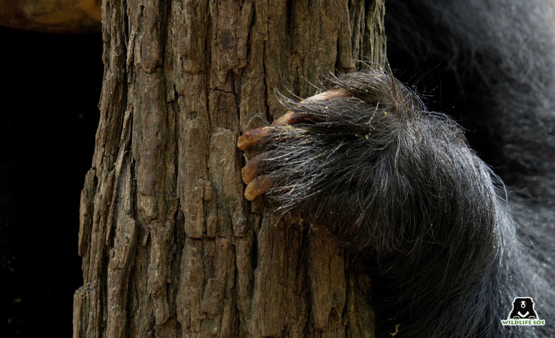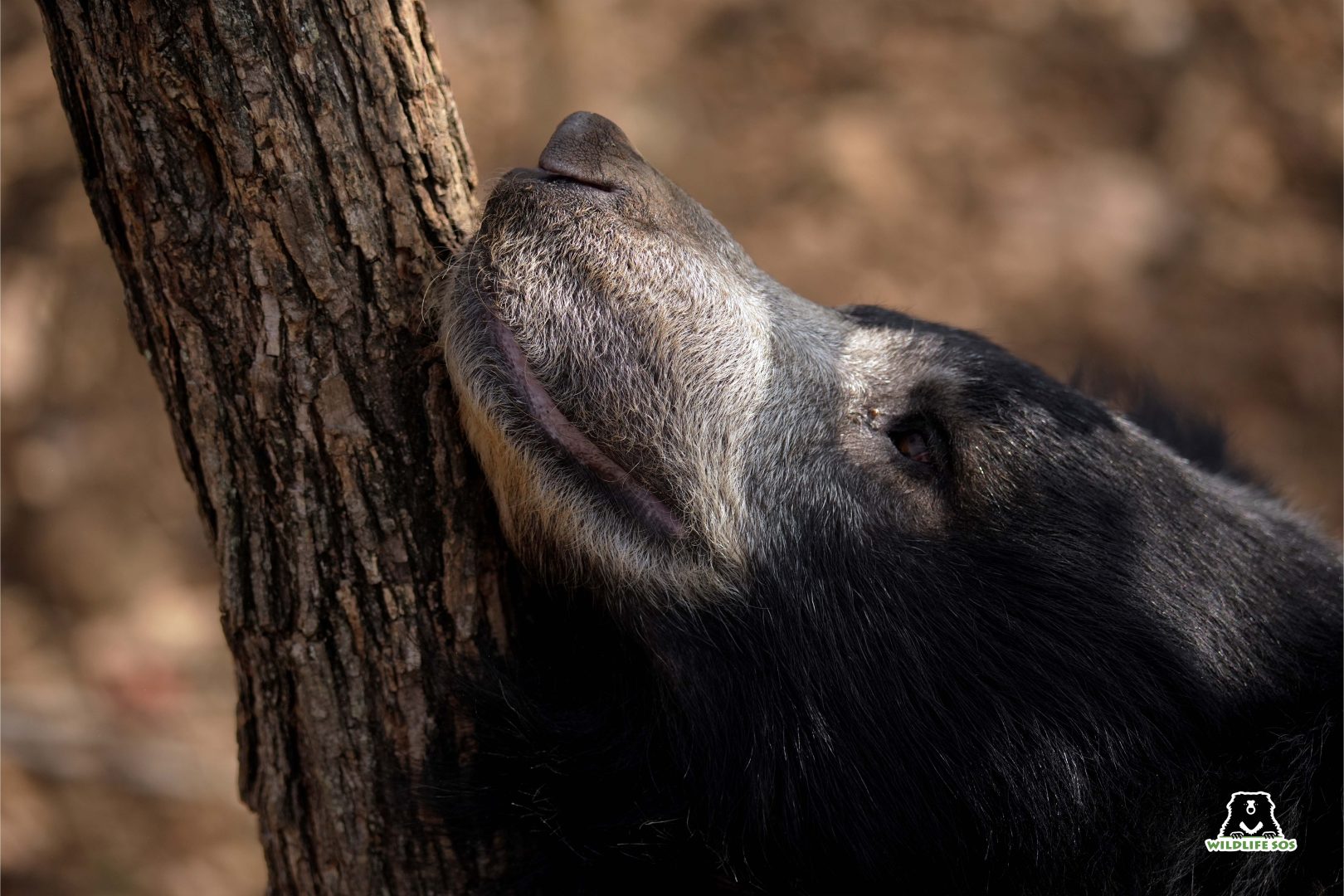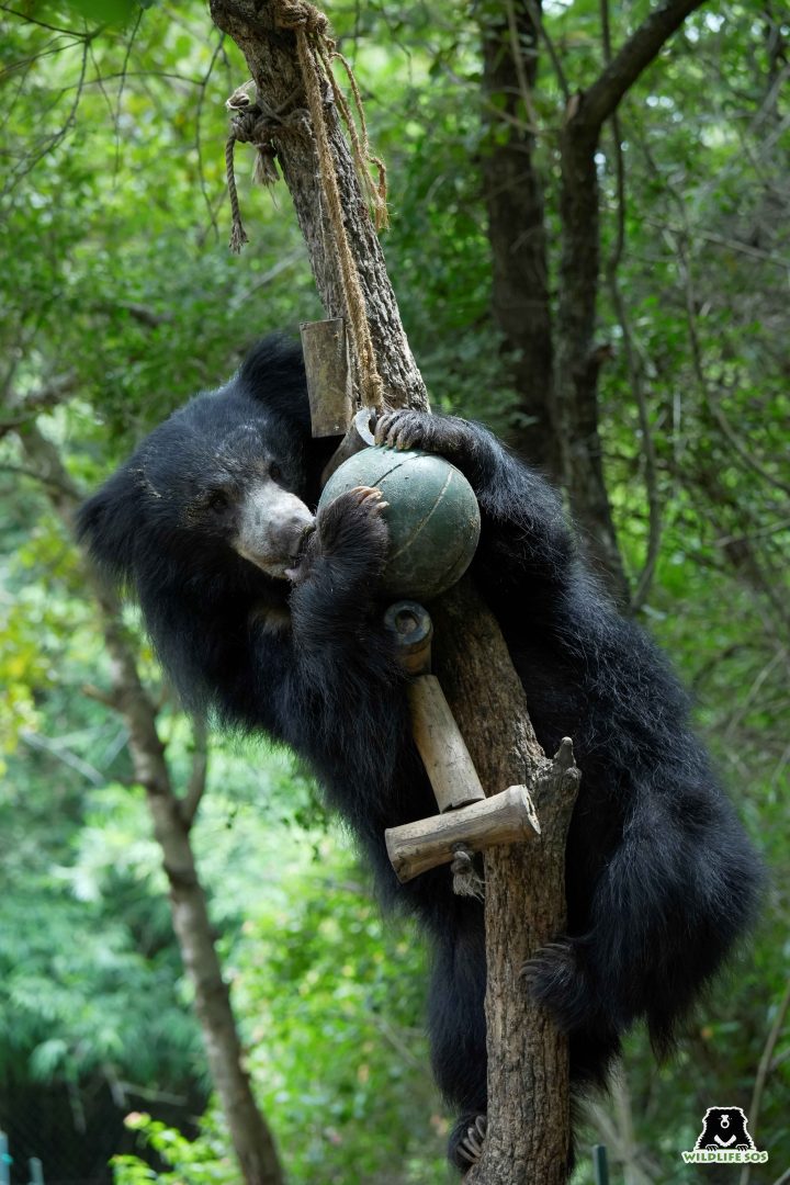 If you happen to visit the Bannerghatta Bear Rescue Centre (BBRC), it is highly likely that you would be able to hear loud sounds of slurping. Our team would then prompt the curious you to pause and look up. On one of the branches of the many trees, you may spot a sloth bear engrossed in licking peanut butter off a hanging ball. And in all likelihood, this particular ursine would be Hamsi, a 13-year-old who not only has an exceptional liking for peanut butter, but can also skillfully scale a tree to reach for it!