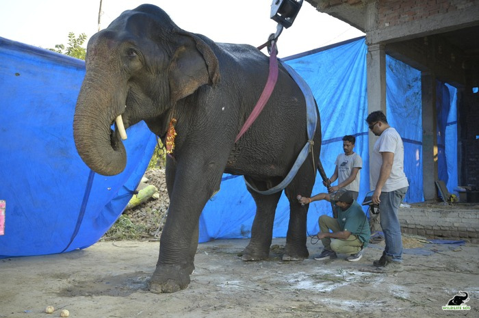- Ensuring Manu’s stability before the long journey became crucial to prevent any stress or complications for the ailing elephant. [Photo © Wildlife SOS/Mradul Pathak]