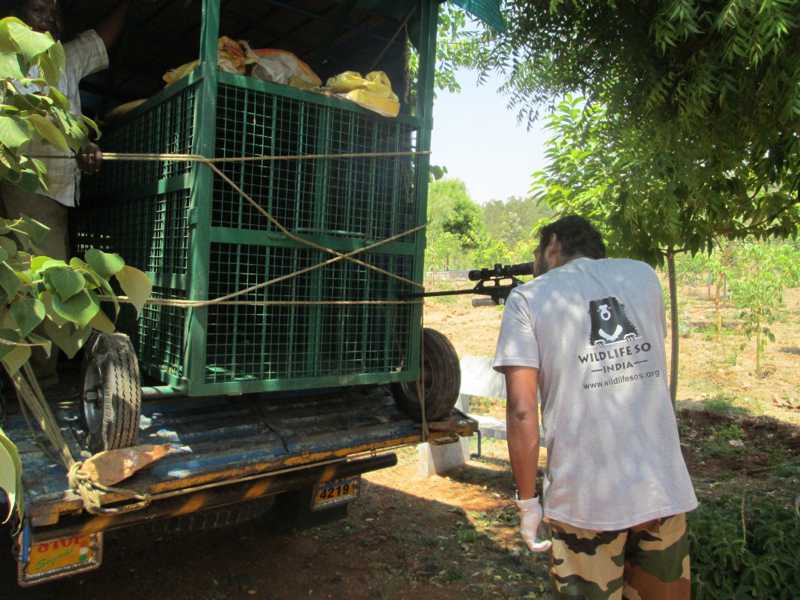 A three member team from Wildlife SOS is deployed immediately to aid the forest department officials in the rescue operation. On arriving at the location, they set up safety nets along the periphery of the house and successfully lure the big cat into a trap cage, after which the feline is gently sedated with tranquiliser equipment.