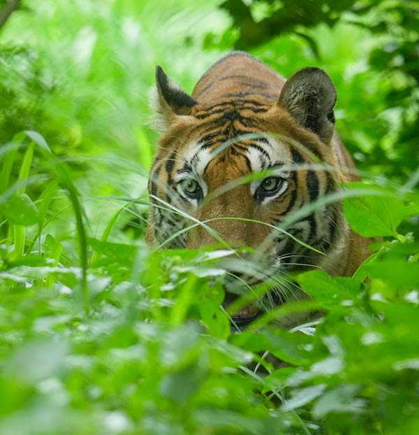 Driving through the dusty tracks of the reserve at dawn was like stepping into another world. Our initial visit was at dawn when the forest was coming alive for the day. The air was crisp and the sounds of the jungle are like nothing else! Our guides were incredibly knowledgeable, pointing animal tracks, the numerous species of the jungle, bird calls, and what we were looking/listening for when searching for tigers and leopards.