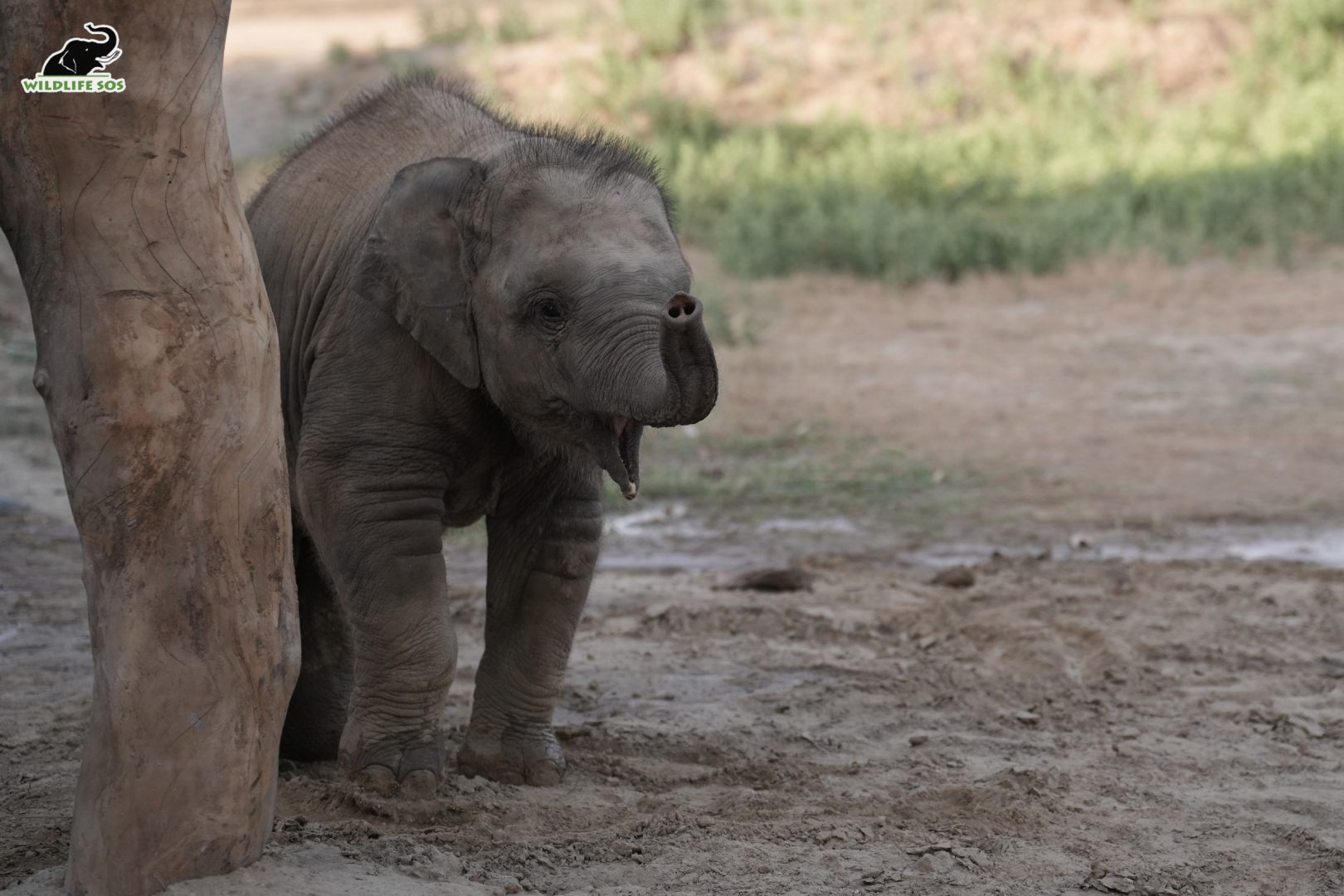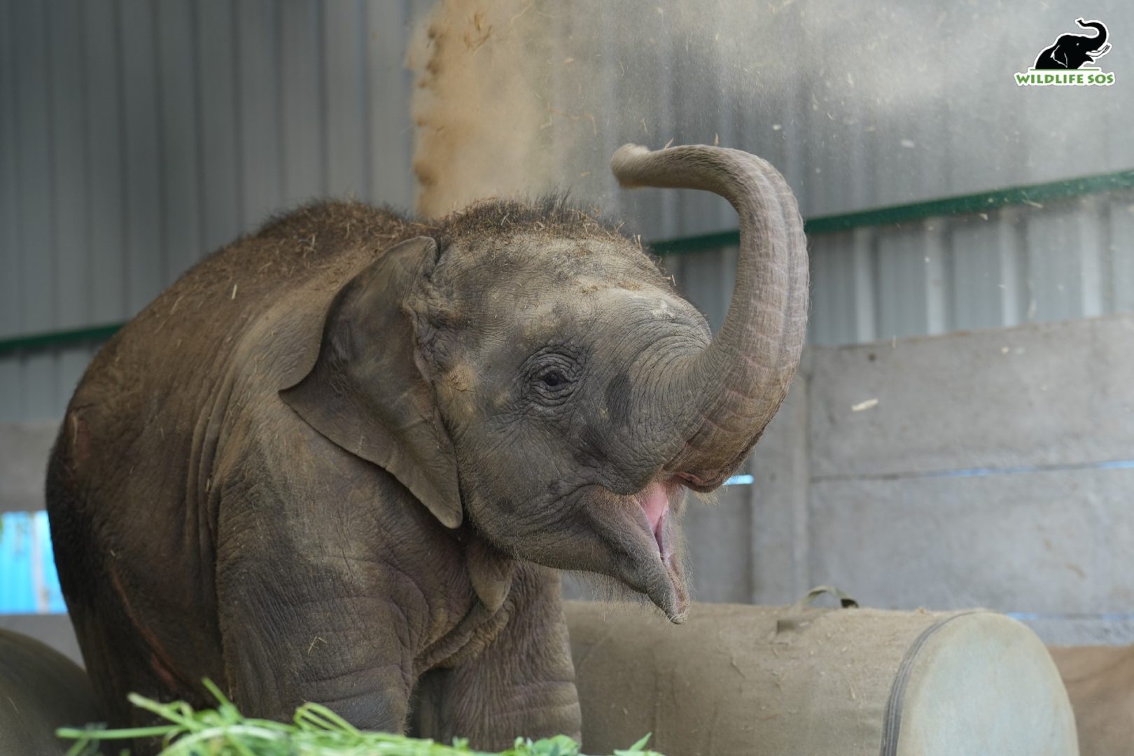 Bath time also allows elephants of all ages to enjoy playtime! Bani’s caregivers keep a bucket of water close to her, and she uses her tiny trunk to collect and splash water all over herself. Not only herself, she sometimes sprays water on her caregivers as well! Bani has shown her mischief and vivacity during this time, and a plan to create a pool near her field is now underway so that the young elephant has access to water whenever she wants.