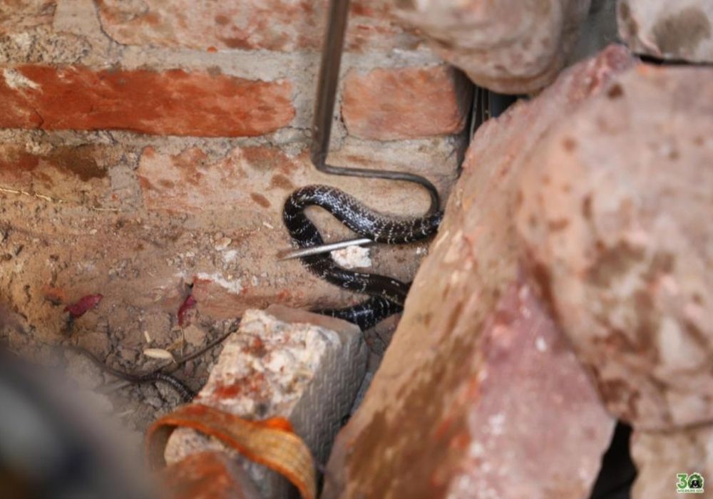 A highly venomous common krait, found curled up within a residence, was safely rescued and released back into the wild. [Photo © Wildlife SOS]