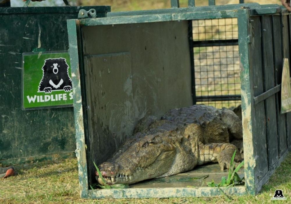 In Madhipur village, a massive six-foot-long mugger crocodile was carefully secured after anxious residents reported its presence. [Photo © Wildlife SOS/Atharva Pacharne]