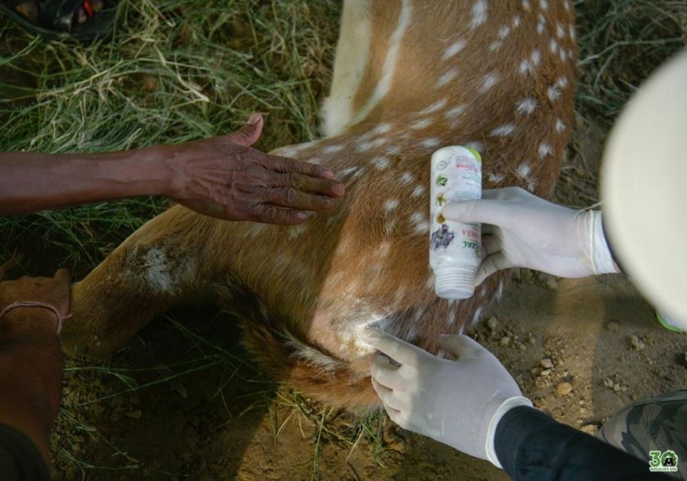 An injured spotted deer was given timely medical care and a chance to regain his strength. [Photo © Wildlife SOS/Vineet Singh]