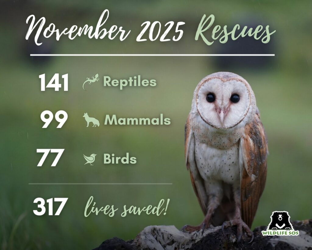 For us at Wildlife SOS, November demands high vigilance and careful attention as rescue calls continue to come in from concerned citizens. From a massive python being extricated from a university campus to busting an illegal wildlife trade, this month proved to be yet another one where urgencies were dealt with expertise.