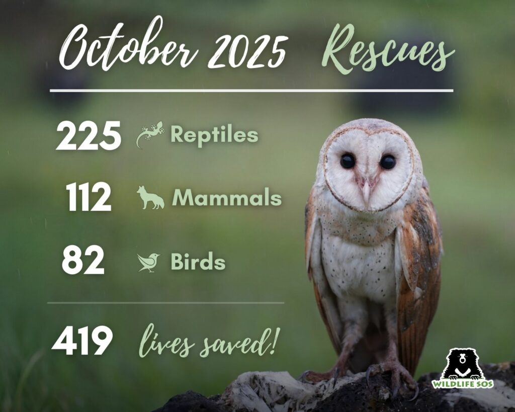 Wildlife SOS in the state of Uttar Pradesh was responsible for a whopping total of 186 rescues of wild animals. These included 108 reptiles, 20 birds and 58 mammals, each playing an important role for protecting the biodiversity of the region.