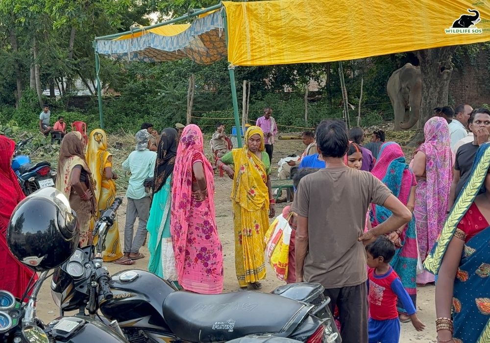 - Curious onlookers gathered around Hari, while the Wildlife SOS team and forest officials worked towards calming the situation and ensuring Hari’s care and safety. [Photo © Wildlife SOS/ Vineet Kumar Singh]