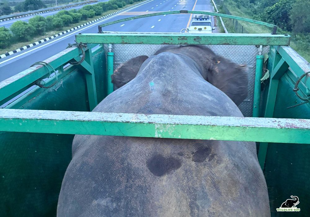 The ambulance has been sanitised and has been loaded with fresh fruits, like watermelons and bananas, and green fodder, keeping Hari’s well-being in mind. However, the team faced significant challenges in getting Hari to board the ambulance — he initially resisted for over three and a half hours, despite careful coaxing. A large crowd of onlookers gathered at the site, but the forest staff and police ensured the situation remained under control. To assist, an earth excavator (JCB) was brought in to dig a pit and lift the entry ramp of the ambulance at an incline that was more comfortable for Hari to climb in. Just as the vehicle was being positioned, the ambulance’s hydraulic lift failed, and a local mechanic from a nearby market was called in. The ambulance was successfully repaired.