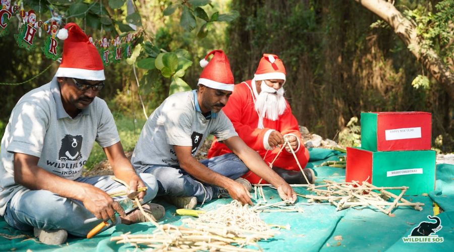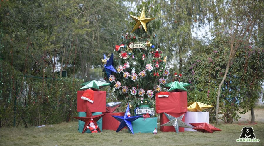 In the festive season of Christmas, our Wildlife SOS centres transform into a magical wonderland every winter. Gold, red, and green adorn the centres and their trees, and our staff members don red hats to bring in happiness and joy for the merriest time of the year!