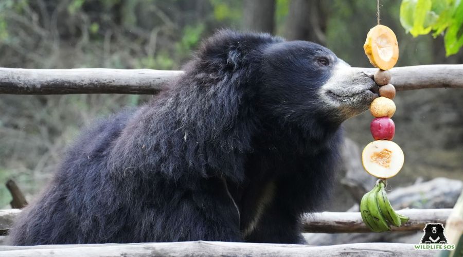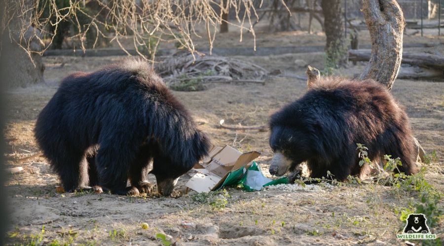 Caregivers of our sloth bears at the Agra Bear Rescue Facility (ABRF) are well aware that the route to their heart and happiness is through their tummy, and so, these gifts consisted of jaggery, dates, popcorn, fresh fruits and of course– honey! The bubbly bears were quick to gobble down their share of yummy treats.