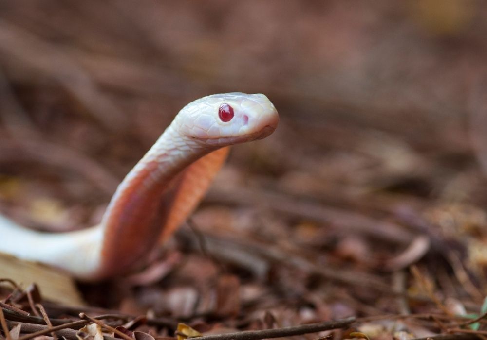 - Although exceptionally rare, albino cobras — with their pale scales and crimson eyes — have been reported in the wild across Tamil Nadu, Uttarakhand, and Maharashtra. [Photo © Canva]