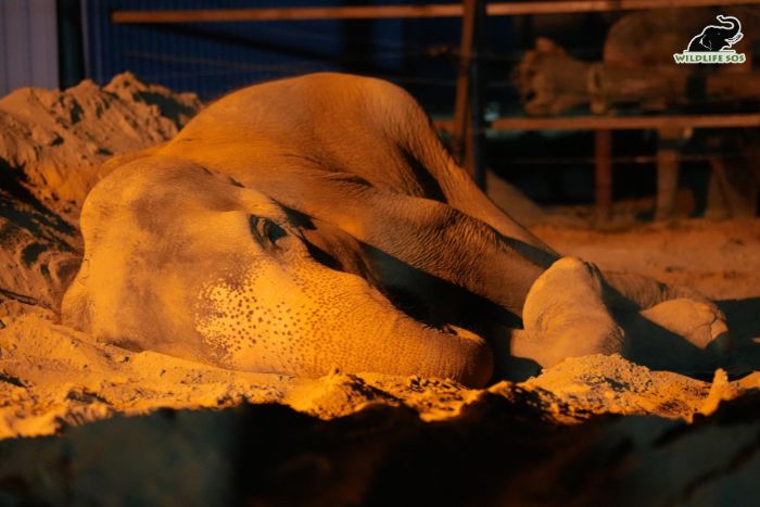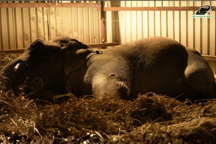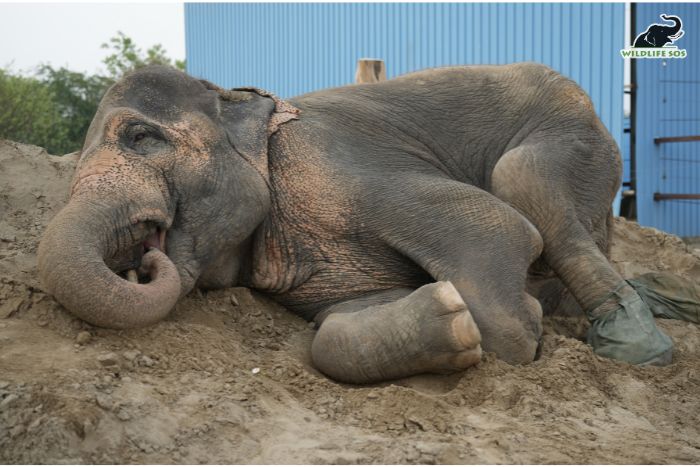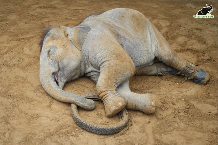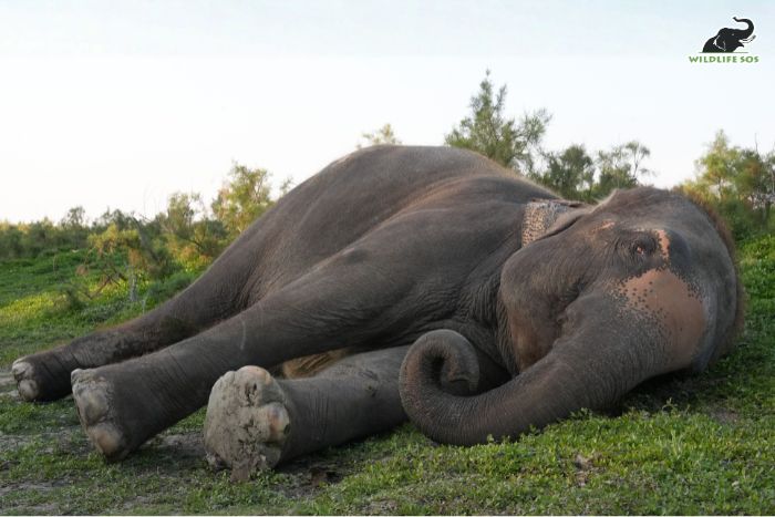 At first glance, a sleeping elephant appears simply at rest.