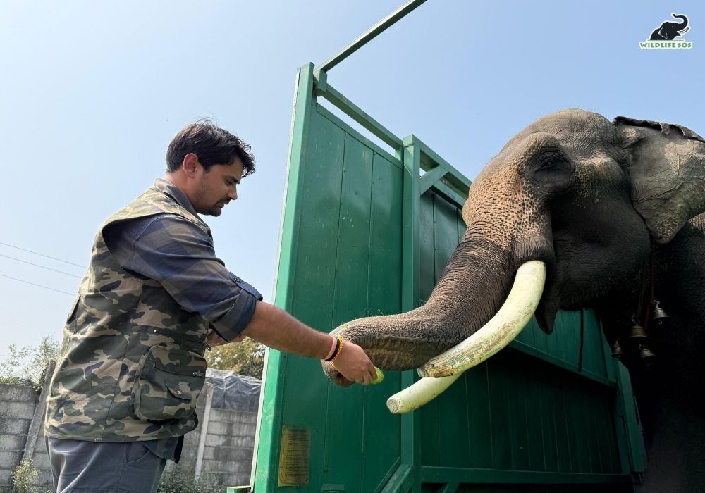 The team did not waste an opportunity to bond with Veer. The caregivers offered him sugarcane that he gracefully accepted and voiced his approval with soft huffs. The veterinarians were relieved to see that Veer’s body posture was not rigid; he remained relaxed. He would tense up during high activity moments but would wind down again, recognising the safe energy around him.