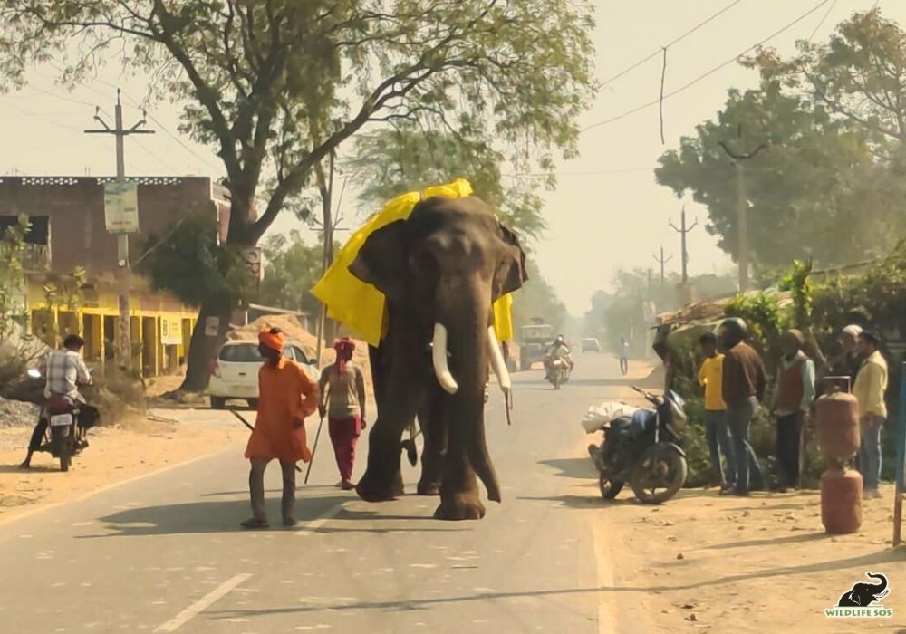 The sound of four bells ringing from an elephant’s neck was mixed with the noise of traffic in Mau, an industrial town in Uttar Pradesh. While the bull elephant had long tusks, what caught everyone’s eyes was his awkward way of walking. The elephant had a noticeable limp in his front right limb, but was constantly being made to walk by his mahout who had grabbed him by one of his tusks.