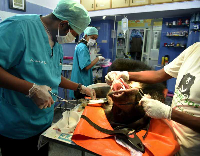 The sloth bear identified as a male, is about 6 to 7 years old and has suffered massive injury and internal damage to his mouth, head and neck regions. As the bomb had gone off inside the bear’s mouth, it had sustained a severe fracture in its upper and lower jaws going into the skull. His condition has been deemed critical and is currently kept under close observation at the Bannerghatta Bear Rescue Center.