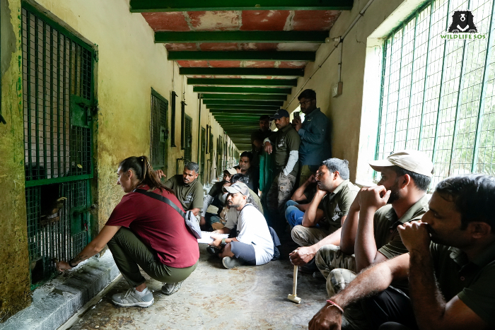 To make the sessions more focused and effective, the Bear SAFE trainers and Wildlife SOS staff were divided into two groups — Team Momo and Team Kanmani, named after two resident sloth bears at ABRF. Each team was assigned specific enclosures and a thoughtfully curated list of bears to train.