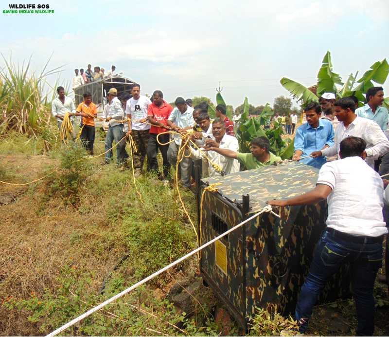 “In incidents like this one, the gathering people and bystanders become our first priority, as it is impossible to conduct a safe rescue without controlling the crowds,” says Wildlife SOS senior veterinarian, Dr. Ajay Deshmukh, who runs the leopard rescue centre, “While a few members of our team assisted the Forest Department in pushing back the onlookers, we set up the trap cage.”
