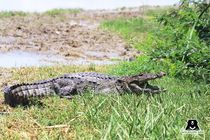 The humongous crocodile was discovered by a local farmer on his agricultural field in Dumad village. Upon spotting the reptile, the farmer immediately informed Wildlife SOS on its 24×7 rescue helpline. After being alerted, a 4-member team was dispatched to attend to the distress call and the team travelled almost 10 km to reach the rescue site.
