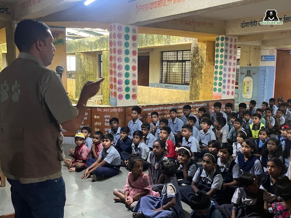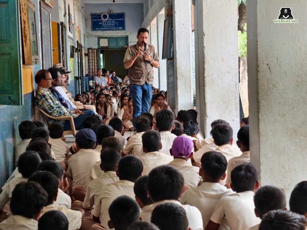 On October 6, the Wildlife SOS team also visited Subhash Vidyamandir, Pimpalvadi, B.D. Kale College, Ghodegav, and Shivanjali Vidyaniketan, Chalakwadi — schools situated in areas prone to human-leopard conflict — to spread awareness. Mr. Mahendra Dhore interacted with students and spoke on how knowledge and causes of conflict can help tackle the situation appropriately to bring in peaceful coexistence.
