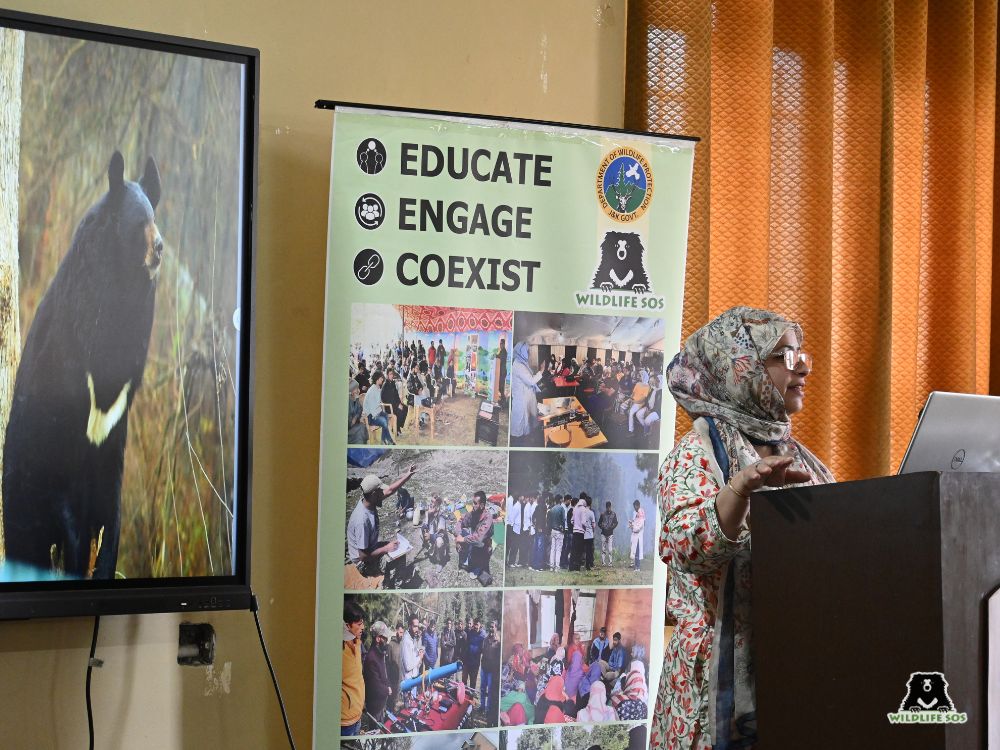 Ms. Aaliya Mir focussed on the importance of conserving Himalayan brown bears in her address at Sumbal Degree College, J&K. [Photo © Wildlife SOS]