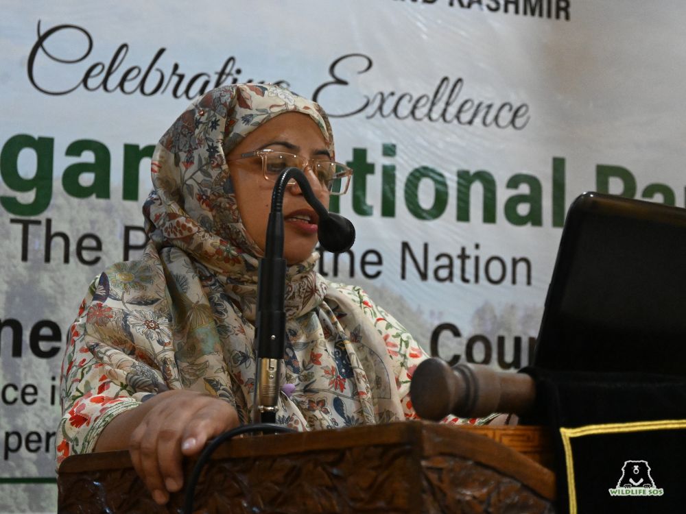 Ms. Aaliya Mir, Wildlife SOS’s Education Officer and Project Head in J&K, delivered a keynote address at Limber Wildlife Sanctuary to motivate students to stand up for wildlife and their habitats. [Photo © Wildlife SOS]